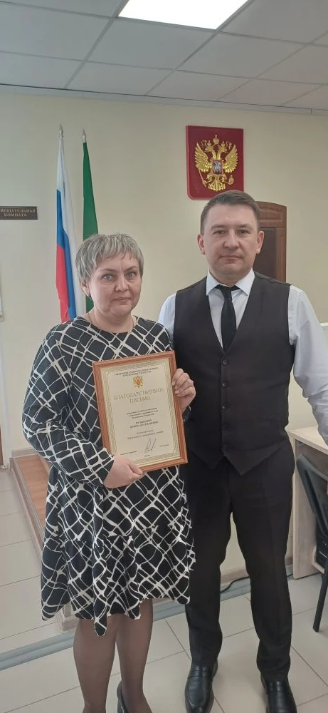 18 марта 2026 года председатель Алексеевского районного суда РТ Дмитрий Поляков в торжественной обстановке вручил Благодарственное письмо Начальника Управления Судебного департамента в Республике Татарстан Салихова З.М., секретарю судебного заседания Ирине Пузыревой. Это признание её профессионализма, преданности делу и безупречного исполнения обязанностей. Секретарь судебного заседания — ключевая фигура в работе суда, отвечающая за подготовку и проведение заседаний, ведение протоколов и оформление документов. Ирина Пузырева много лет образцово выполняет свои обязанности, проявляя высокий профессионализм и личные качества. Её вклад в работу суда неоценим. Коллектив суда поздравляет Ирину Анатольевну, желает здоровья, энергии и дальнейших успехов. Пусть это письмо станет стимулом для новых свершений.